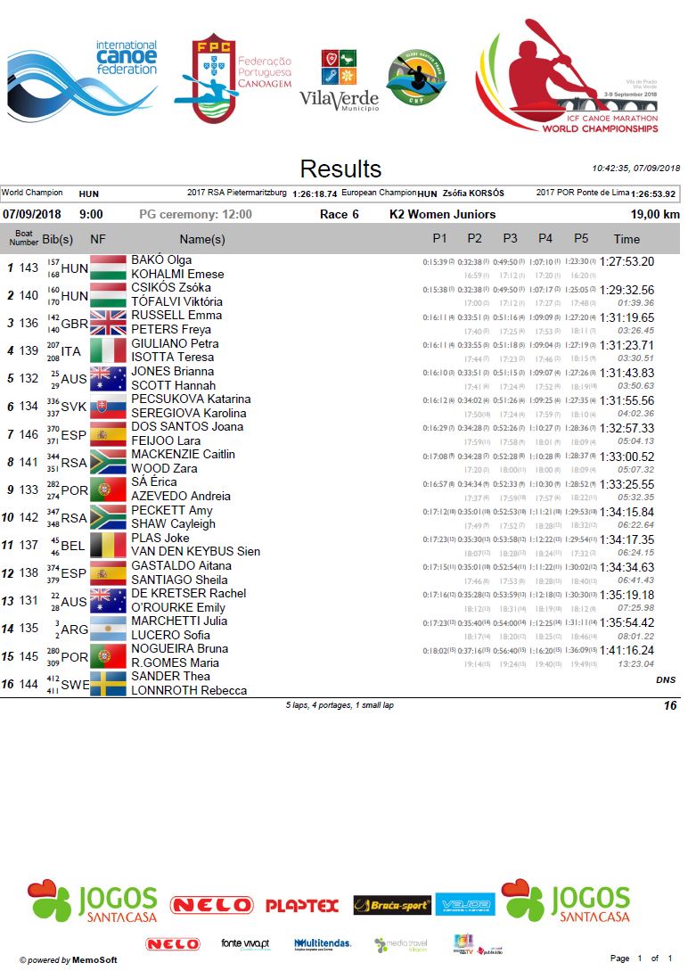 Od 6.9 sa konajú v portugalskom Prado ViLA Verde majstrovstvá sveta v maratóne rýchlostnej kanoistike. Dnes 7.9 mali o 9:00 miestneho času štart juniorky. Slovensko reprezentovala dvojica Katarína Pecsuková/UKB a Karolína Seregiová/ŠAM. Na 19 kilometrov dlhej trati so štyrmi prenáškami si počínali výborne a skončili na šiestom mieste. Pritom až do poslednej prenášky, kilometer pred cieľom bojovali o bronz. Obom dievčatám ďakujeme za bojovnosť, predvedený výkon a vzornú reprezentáciu. Gratulujeme …